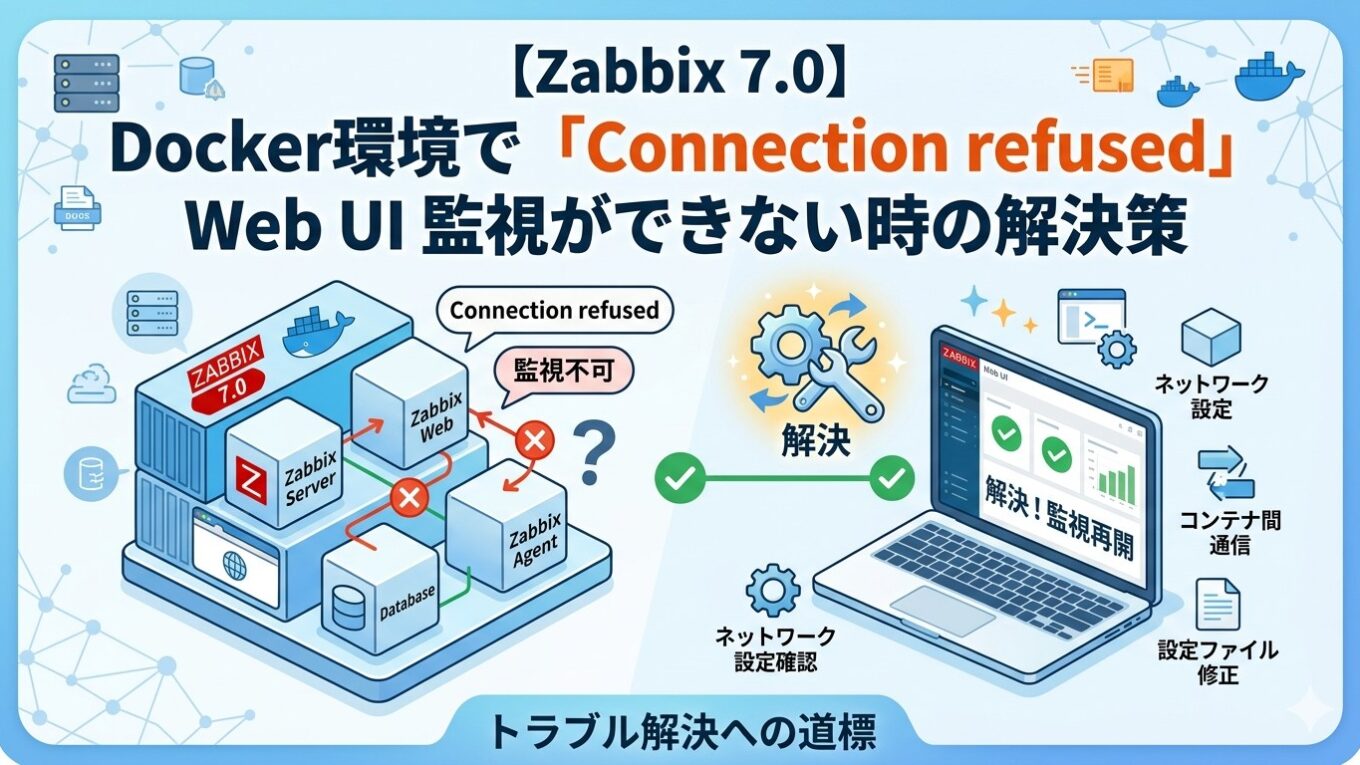 【Zabbix 7.0】Docker環境で「Connection refused」が出てwebUIの監視ができない時の解決策